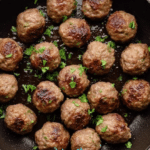 These meatballs shine when paired with your favorite marinara sauce—either homemade or store-bought. The tomato sauce cradles the meatballs, soaking into every tender bite and tying the dish together with rich, tangy goodness.