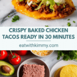 These Crispy Cheesy Baked Chicken Tacos are a quick and delicious meal perfect for weeknights or casual gatherings. Ground chicken is seasoned and cooked to perfection, then wrapped in corn tortillas with melted cheese and salsa before being baked until crispy. Fresh toppings like lettuce, tomato, avocado, cilantro, and lime add bright flavors and freshness to every bite.