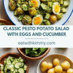 A vibrant and flavorful Pesto Potato Salad featuring tender baby Yukon gold potatoes, fresh basil, crunchy cucumber, and hard-boiled eggs, all tossed in a zesty pesto dressing. Perfect as a refreshing side dish for summer gatherings or a satisfying picnic addition.